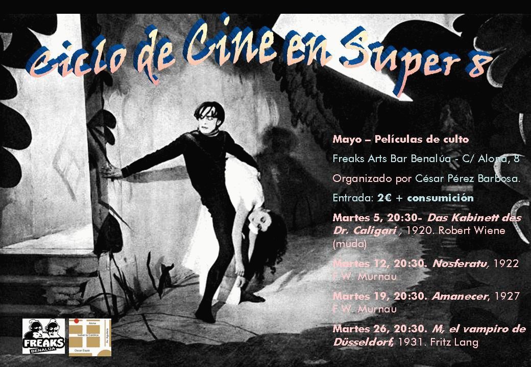 l Freaks Arts Bar de Benalúa despide el mes de mayo con un completo programa de actividades que abarca talleres de transfer y fotografía, un concierto benéfico por Nepal, la última proyección del ciclo de películas de culto en Súper 8 M, el vampiro de Düsseldorf y el visionado de Semáforo rojo, del ciclo de cine dedicado a Mario Bava.