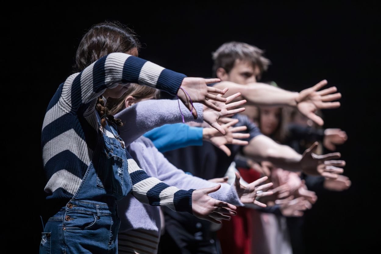 ‘Copiar’ es una pieza multidisciplinar, sin texto, que nace del lenguaje del circo contemporáneo y se apoya en la danza, la música y el diseño lumínico para construir una experiencia participativa en la que el público deja de ser espectador para convertirse en parte activa del espectáculo.