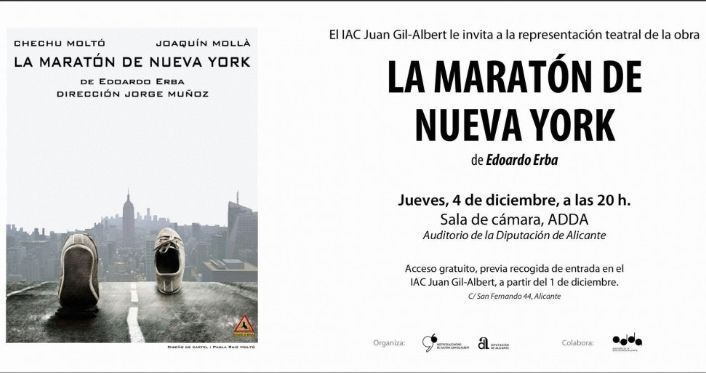 La entrada para asistir a “La Maratón de Nueva York” es gratuita, limitada al aforo, y las invitaciones -dos por persona- se pueden recoger en la Casa Bardín (C/ San Fernando, 44, Alicante).