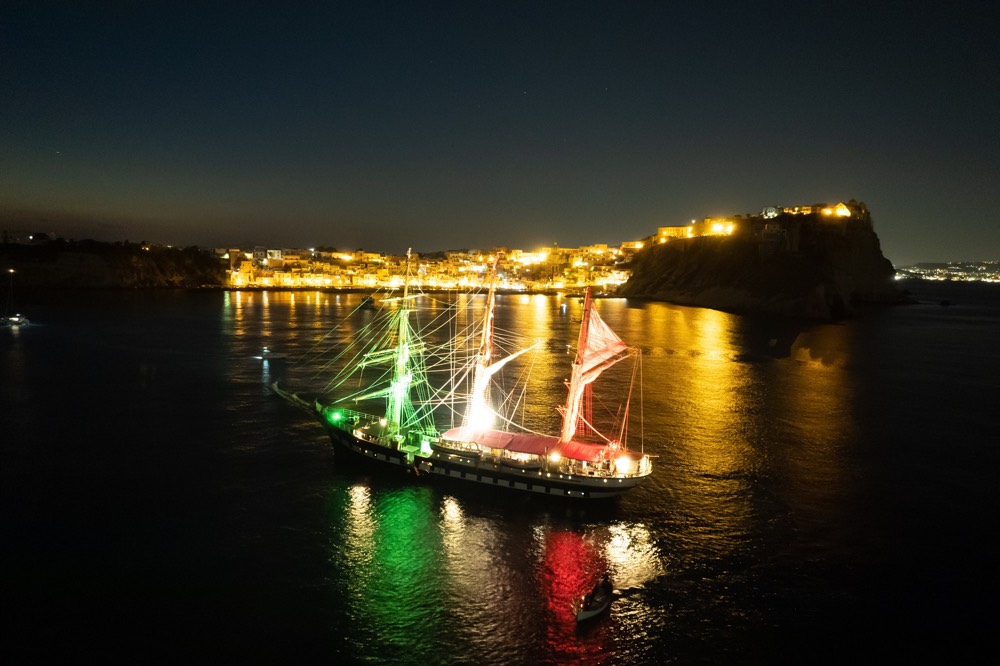 Con casi 70 metros de eslora y quince velas que suman cerca de 1.000 metros cuadrados de superficie, el Palinuro es un auténtico museo flotante. Botado en 1934 en los astilleros Dubigeon de Nantes bajo el nombre de Comandante Louis Richard, fue adquirido en 1950 por la Marina italiana, que lo convirtió en buque de instrucción. Desde entonces, ha formado a generaciones de marinos y se ha consolidado como símbolo de tradición naval.
