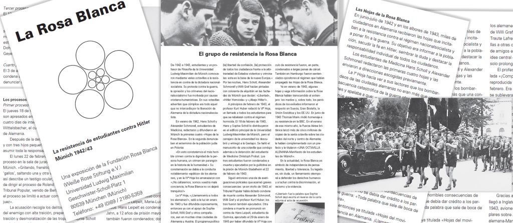 De 1942 a 1943, estudiantes y un profesor de Filosofía de la Universidad Ludwig-Maximilian de Múnich, denominados «Die Weiße Rose» (La rosa blanca), convocaron mediante octavillas a la resistencia en contra de la dictadura nacionalsocialista. Las denominaron «Hojas de la Rosa Blanca». Su protesta contra la guerra, la opresión y los crímenes del nacionalsocialismo fue motivada por causas cristiano-humanísticas. Tras ser descubiertos y ejecutados varios de sus integrantes, la causa de La rosa blanca logró cruzar fronteras (en junio de 1943 Thomas Mann rindió homenaje a su resistencia en la BBC) y sus octavillas fueron enviadas de vuelta por simpatizantes de la causa, lanzándose desde aviones de la Fuerza Aérea británica sobre diversas ciudades alemanas.