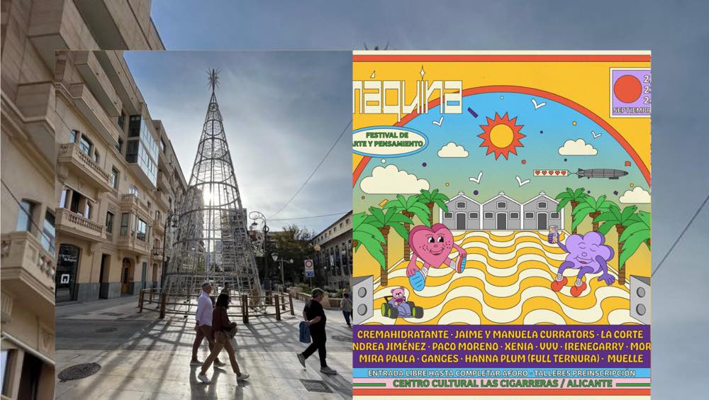 Alicante acoge este fin de semana una gran variedad de eventos, entre los que destacan el ‘Festival Máquina’ en Las Cigarreras, donde también tendrá lugar el ‘Concierto Santa Cecilia’, patrona de los músicos. El Espacio Séneca celebra el V Encuentro de Divulgación Audiovisual ‘Divulgacine’ y, en La Lonja del Pescado se podrá disfrutar de las exposiciones: ‘RGB Magazine #06 El bien y el mal’, con obras de 177 fotógrafos, y ‘Habito en lugares distintos’, del escultor, pintor, ceramista y dibujante Eduardo Lastres.