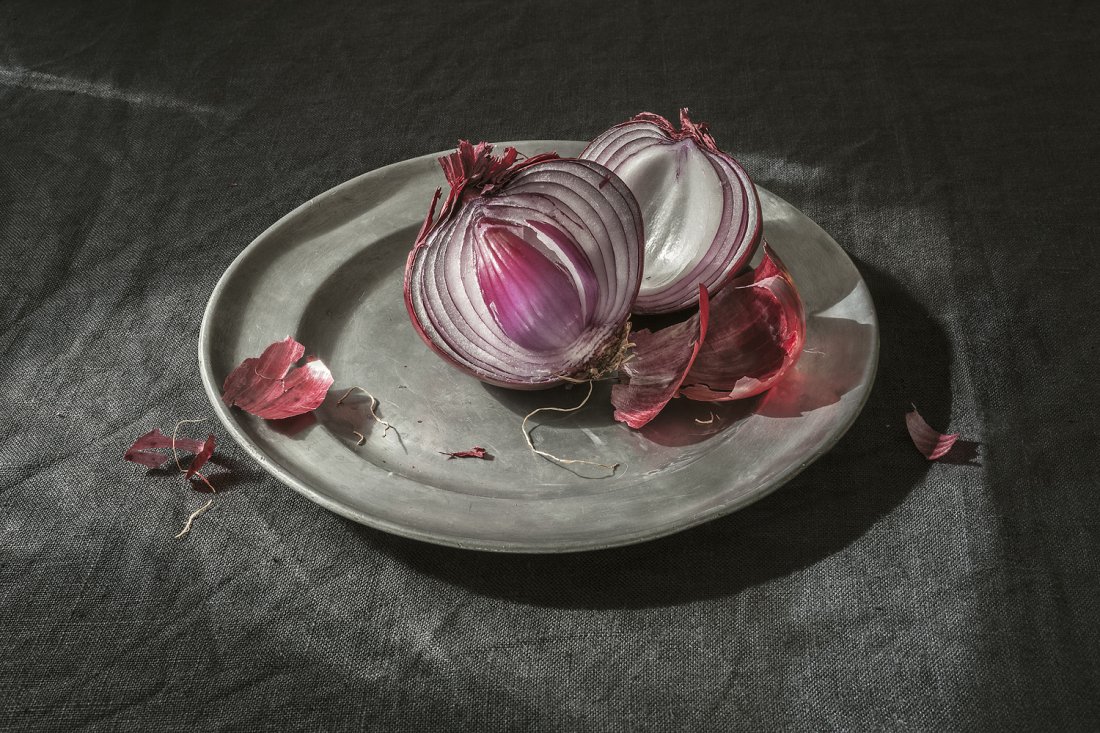 - Cebollas y plato de estaño – © Pilar Pequeño