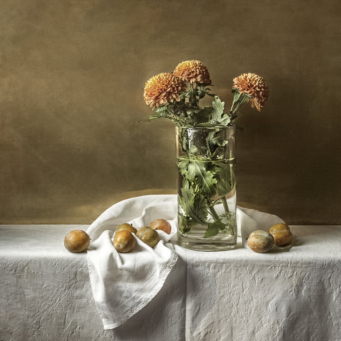 - Jarrón, crisantemos y ciruelas © Pilar Pequeño