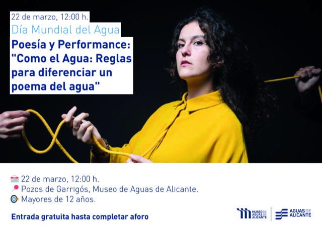 Los Pozos de Garrigós acogerán el próximo sábado 22 de marzo “Reglas para diferenciar un poema de agua”, una actuación de la artista Iria Fariñas que el Museo de Aguas de Alicante ofrece dentro de su Agenda Cultura 2025 y en conmemoración del Día Mundial del Agua ese mismo día. La entrada es gratuita y libre, hasta completar el aforo de los aljibes.