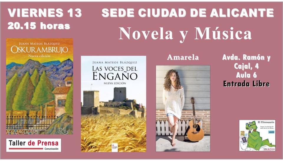 l viernes 13 de marzo, al margen de supersticiones, tendrá lugar un encuentro ineludible para los amantes de los libros y la música. La Sede Ciudad de Alicante (Avda/ Ramón y Cajal, 4) acogerá la presentación de la escritora lorquina Juana Mateos Blázquez, autora de las novelas «Oskurambrujo» y «Las voces del engaño», dos obras de corte histórico ambientadas en el siglo pasado. Como guinda del pastel, la cita se verá amenizada por las canciones de Amarela, cantante folk murciana.