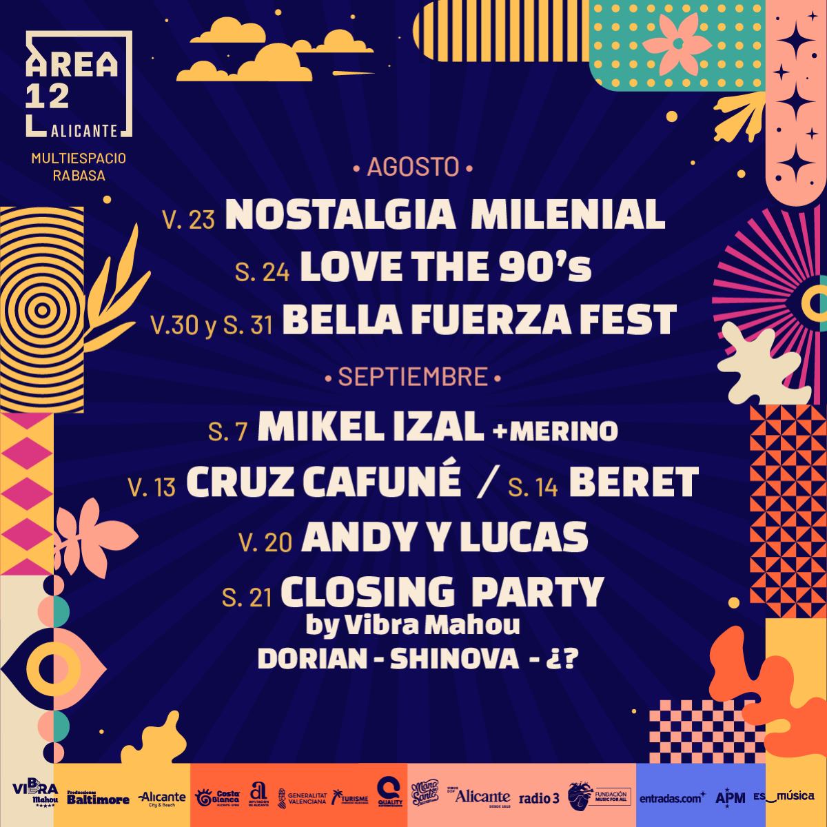 Con esta programación, Área 12 se consolida, por tercer año consecutivo, como un motor de la imagen turística de Alicante, acogiendo las grandes giras nacionales más importantes y posicionándose como un referente musical en la ciudad.