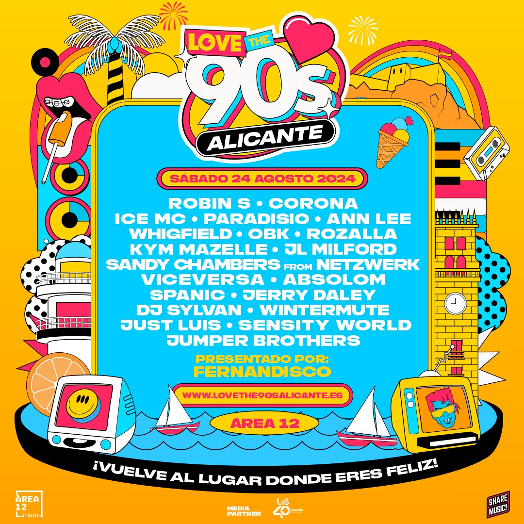 Un día después, el sábado 24 de agosto, tomará el relevo ‘Love The 90’s’ que, bajo el lema ‘¡Vuelve al lugar donde eres feliz!’ ha conseguido congregar sobre el escenario artistas de la talla de Robin S, OBK, Ann Lee, Whighfield, Viceversa, Corona o IMC, entre otros.