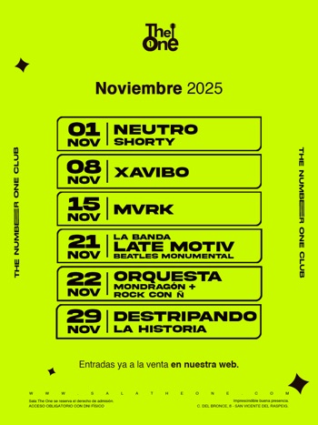 La Sala The One, uno de los templos musicales más reconocidos de la provincia, vuelve a demostrar que su escenario es sinónimo de emociones fuertes. Noviembre llega repleto de propuestas que abarcan desde el rap y el indie hasta el rock clásico y el humor musical, consolidando un cartel tan variado como vibrante.