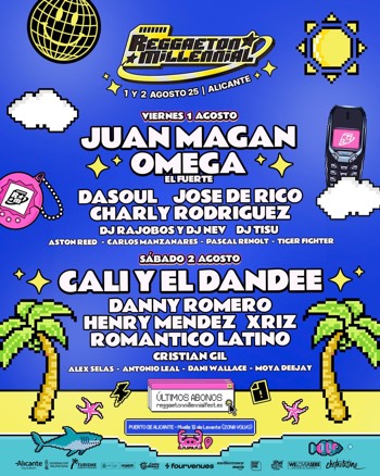 El festival reunirá en el Muelle 12 (Zona Volvo) a grandes nombres del reggaeton, el electrolatino y el pop urbano que marcaron a toda una generación como Juan Magán, Dasoul, Jose Derico, Charly Rodriguez, Dj Rajobos y Dj Nev, entre otros, el viernes 1 de agosto, y Cali y El Dandee, Danny Romero, Henry Mendez, Xriz y Romántico Latino, junto a más artistas, el sábado 2 de agosto